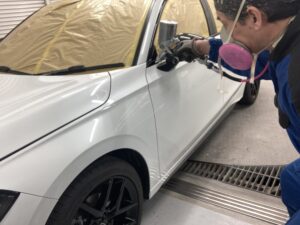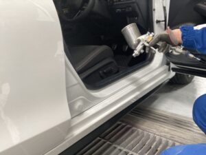 ↓脱脂後にクオーツガラスコーティング剤をスプレーガンで吹き付け施工