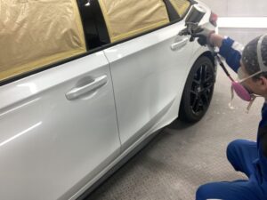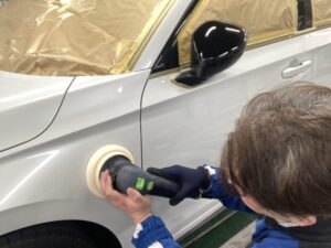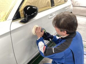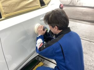↓新車でも下地処理でボデー全体を綺麗に磨き作業