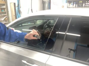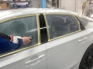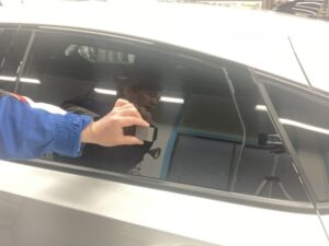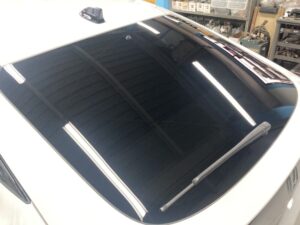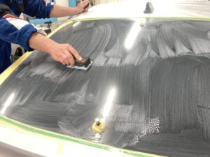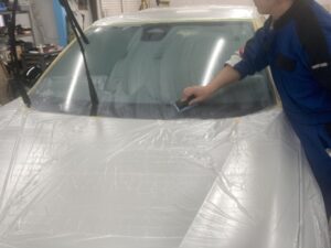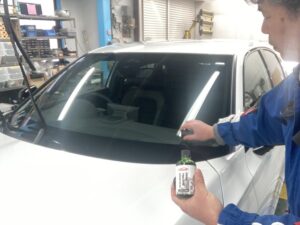 フロントガラスの撥水コーティング施工作業は新車でも下処理として