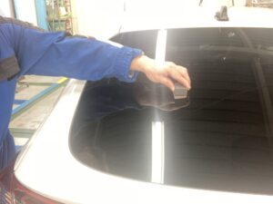 脱脂作業をしてからリモビルのガラス撥水コーティング剤を施工しました。