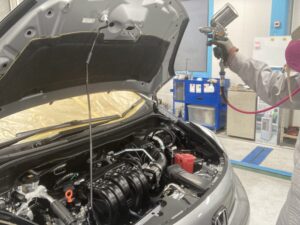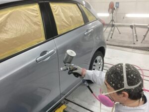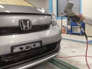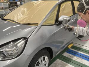 ↓脱脂後にクオーツガラスコーティング剤をスプレーガンで吹き付け施工