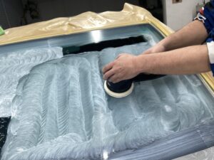 ↓スプレーガンでコーティング吹き付け!手塗ではないから細かい箇所も