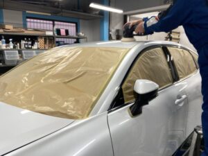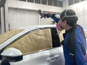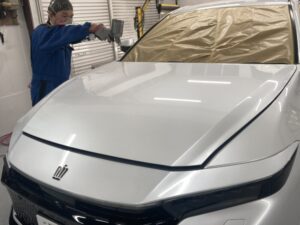 ↓脱脂後にクオーツガラスコーティング剤をスプレーガンで吹き付け施工