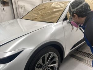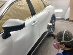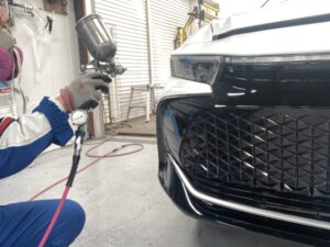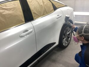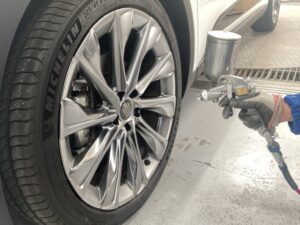 ホイール・細かい部位・各パネルの裏もスプレーガンで吹き付け施工!